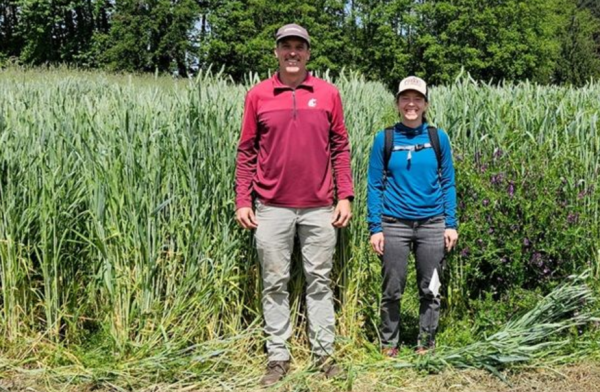 Doug Collins和Teal Potter是这篇新论文的合著者,他们站在黑小麦田里。种植覆盖作物是为了研究其作为生物燃料来源的可行性。
